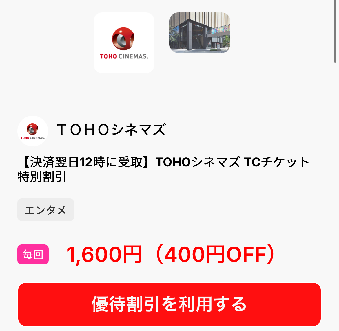 例えば、娘と映画に行く際、400円得した気分になれる。同じ映画を見るのに、普段より安く見れる幸せな気持ちで映画鑑賞。