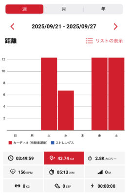 先週の週間距離43㎞