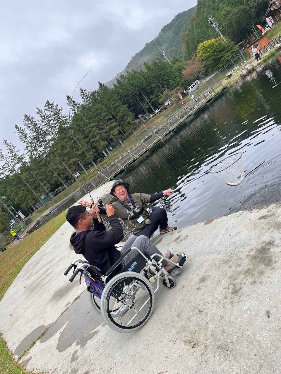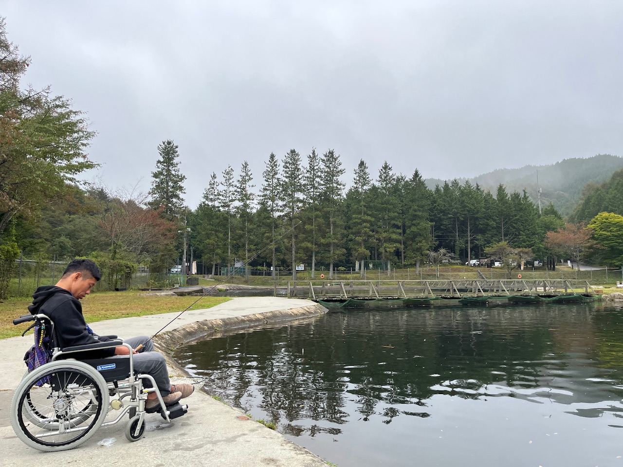 のどかな景色を眺めながら、車椅子に座りながら、のんびり釣りを楽しめる。