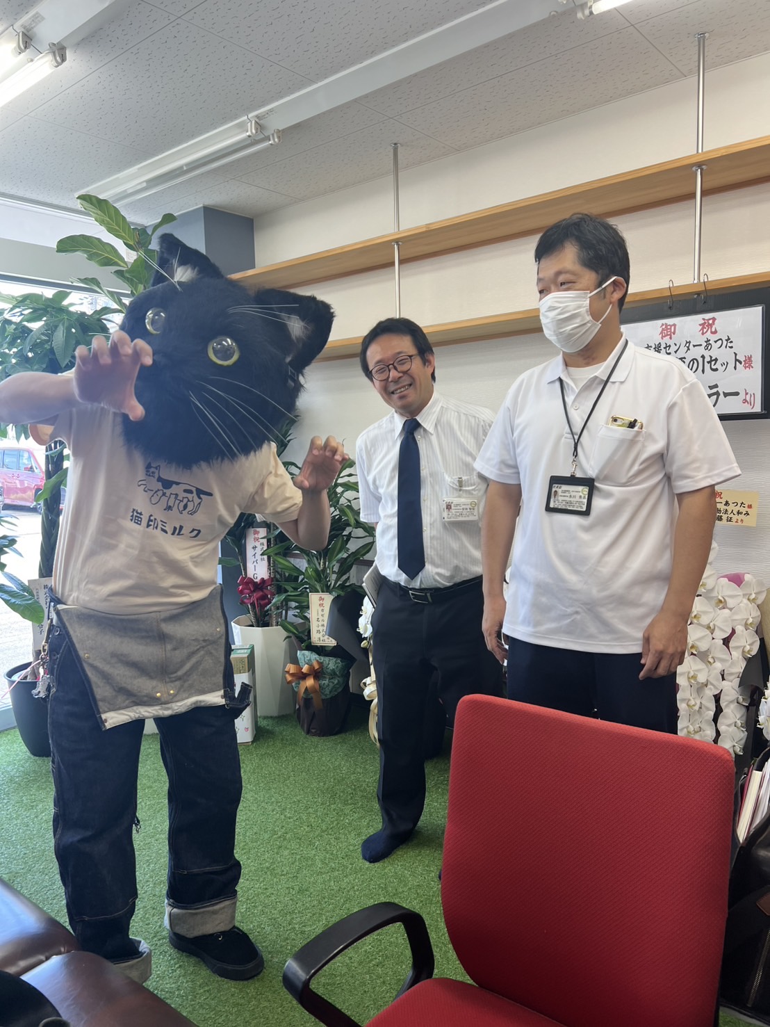 にゃ〜。猫と過ごせる、デイサービス管理者のさとしさんでした。