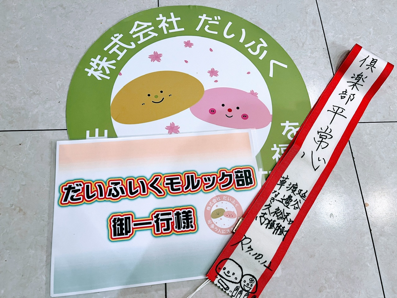 毎度の磁石ロゴと、だいふくモルック部御一行様をつけて、だいふく号の出来上がり。