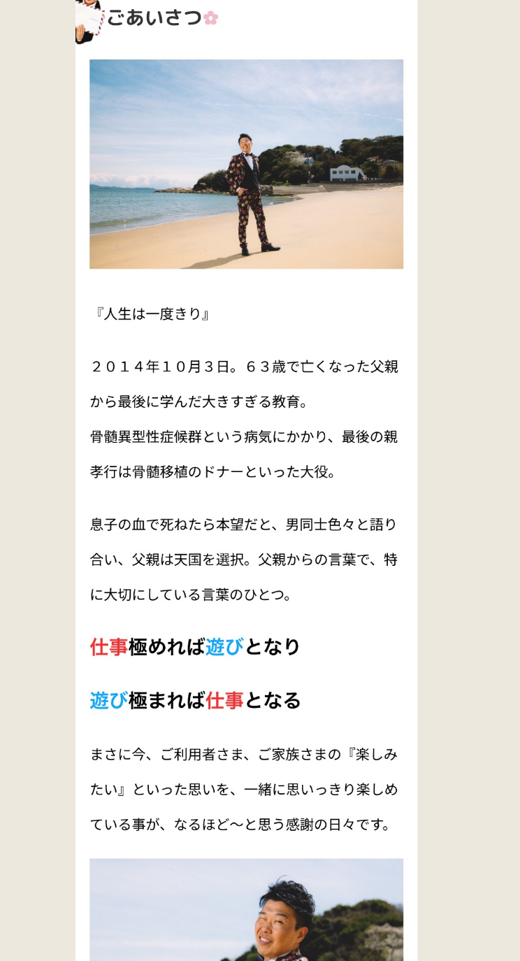 『代表です』くらいなガチガチなイメージの方が、一般的だよと言うアドバイスもありますが、少しでも明るく楽しく、テーマは笑顔を届け隊で始めたスタート。