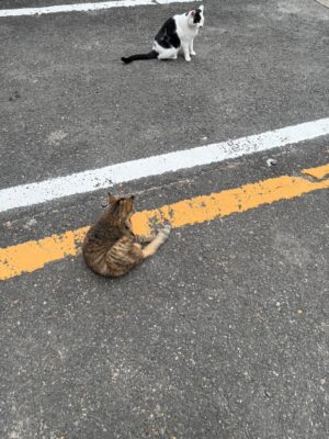 でも、暖かい日は、住み家の目の前の駐車場で、くつろいでいる。