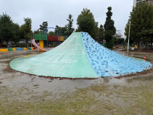天気が良ければ、多くの子ども達で、にぎわうであろう、富士山公園。
