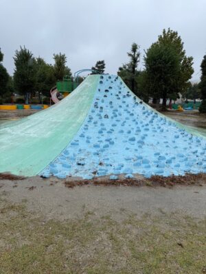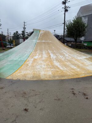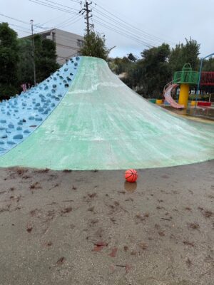 誰もいない公園にたたずむ。憧れの、富士山すべり台に上る。
