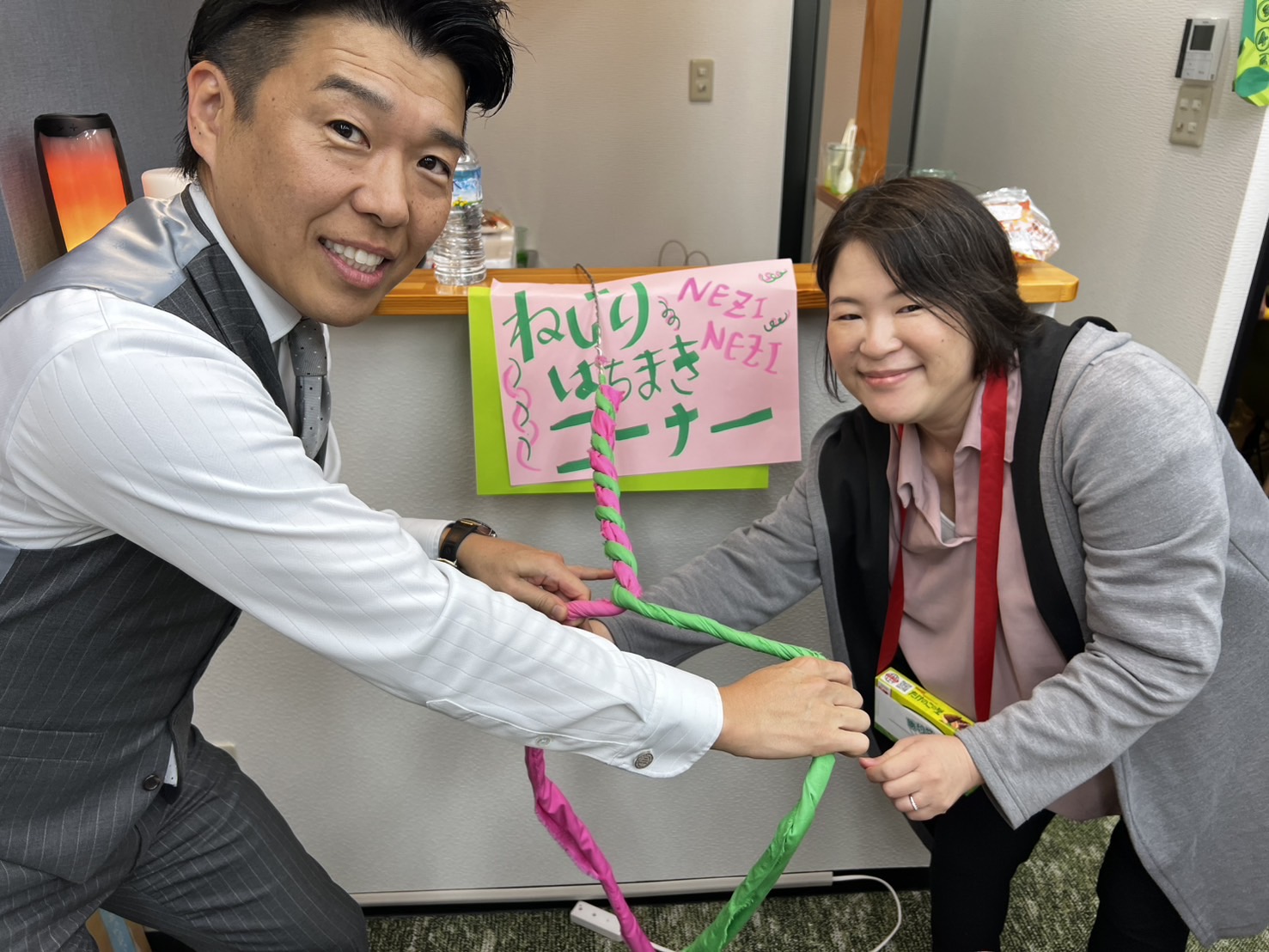 ひとり1人へ想い込めて、ひとり1人の力を借りて、ひとり1人にありがとうの気持ちを込めて、みんなの力をひとつにして、ねじり鉢巻が完成しました。