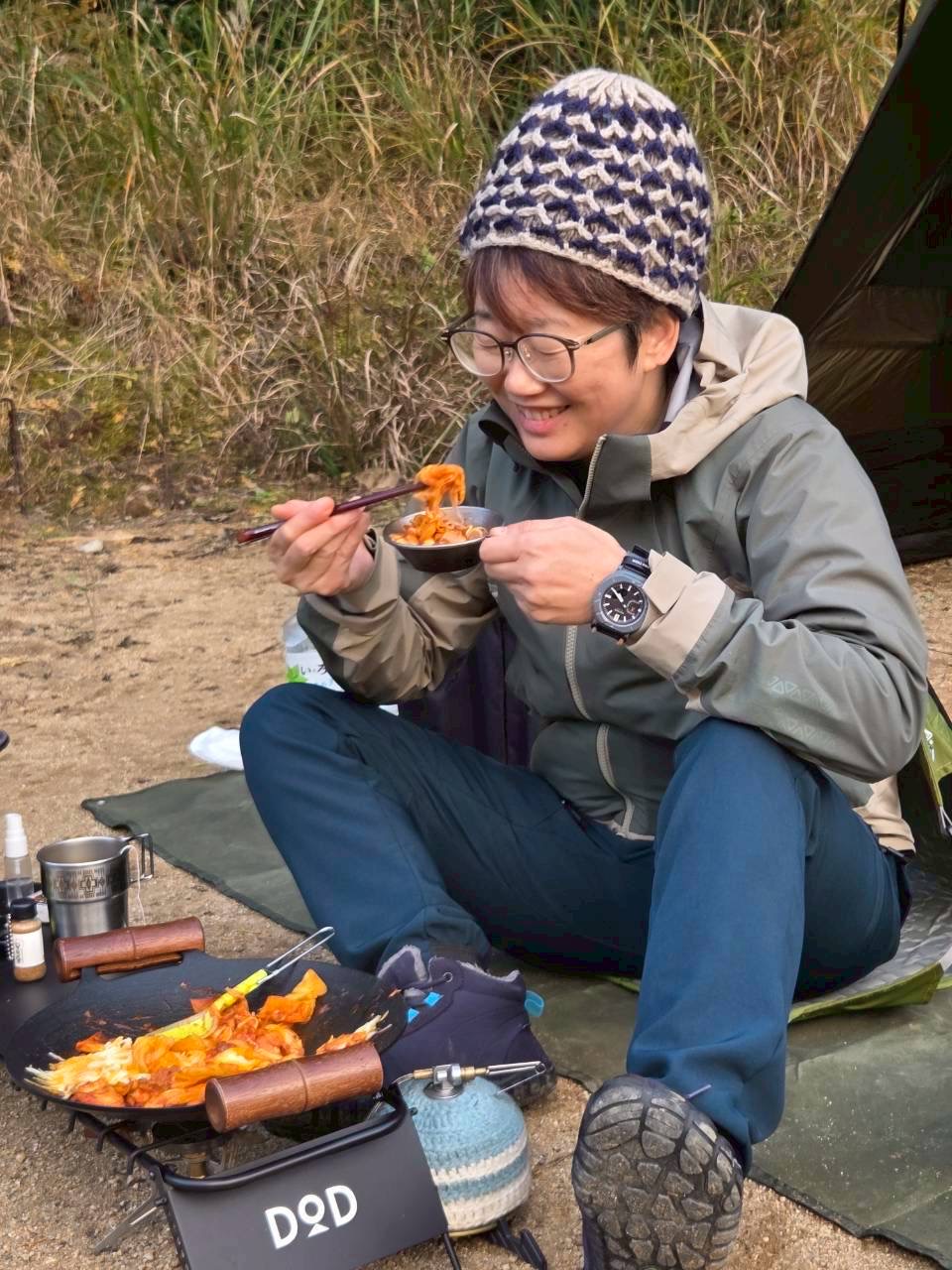 チーズダッカルビが美味しく作れて嬉しそうなみかこくん。