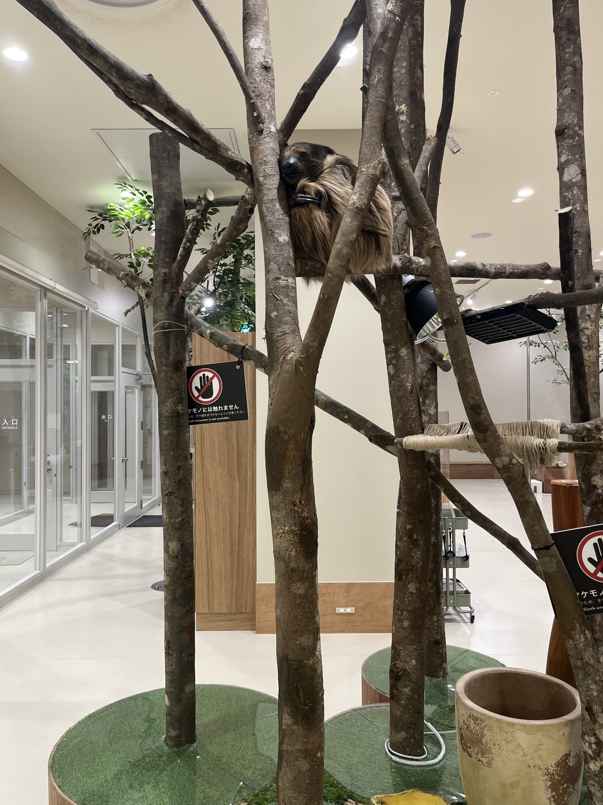 animal cafe。入り口からなまけものちゃんが出迎えて下さる。