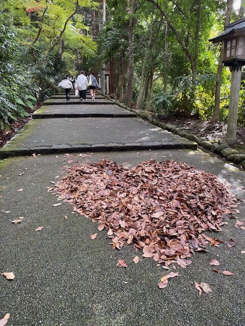 焼き芋でも作るんかなあと思っていたら落ち葉がハート型になっていましたよっと。