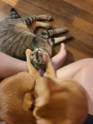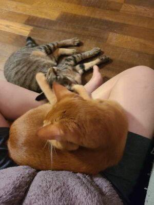 膝で寛ぐみるくとかりん。