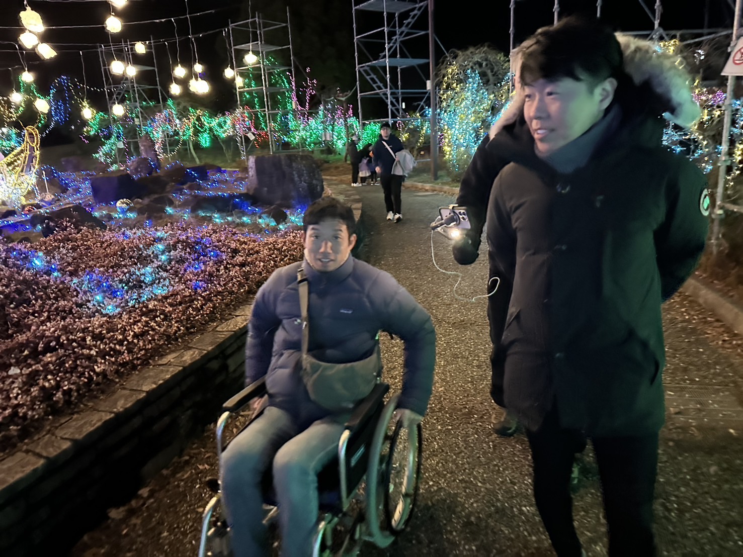車椅子を押してみることはあっても、手を繋いで歩いてみたことが無かったなぁと。