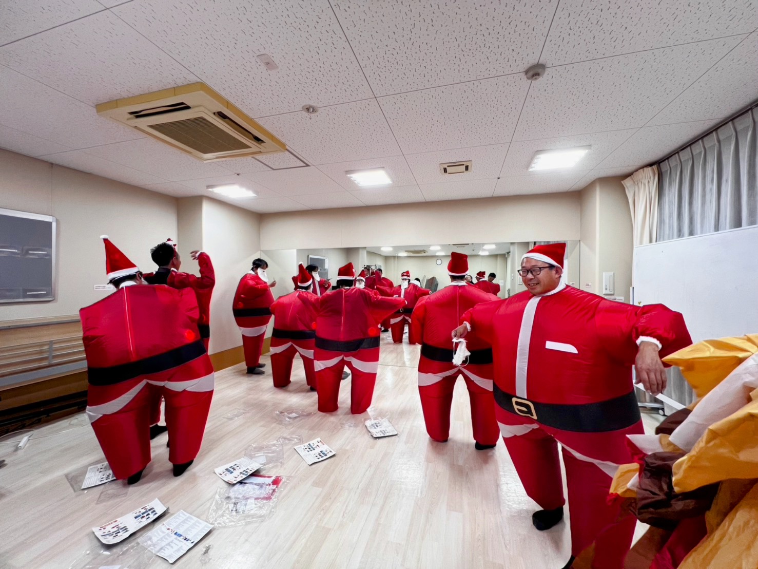 覆面レスラーさんに負けじと、12人の胸板の厚いサンタさんが、主役の方を盛り上げる為に集結。