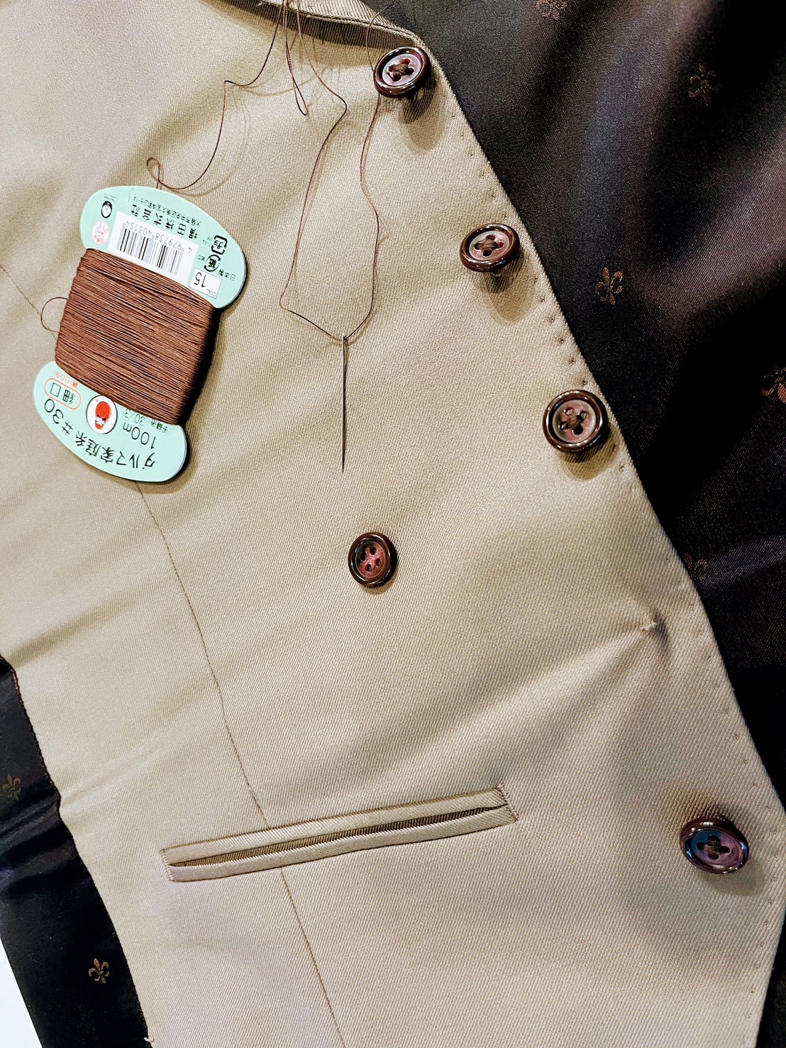 身体にあってこそ似合うスーツ。又このボタンが全て取れてしまったら、ベストとしての役割を果たさない。