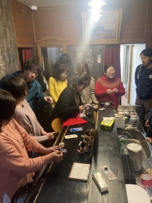瀬浪ケアマネが大枠を作り、裸ドールを作製。小さな裸ドールに小さな衣服を刺繍して着させていくのは、みんな持ち帰って個人作業。
