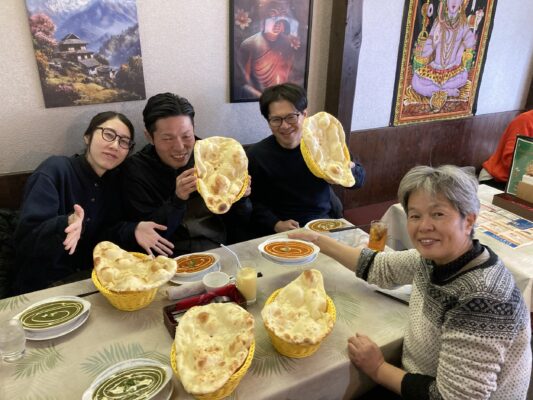 まっつんとツッキーは、あのでっかいナンをおかわりして2枚たいらげてました。じゅんじゅんはカレー甘口にしたのに汗をかいていました。
