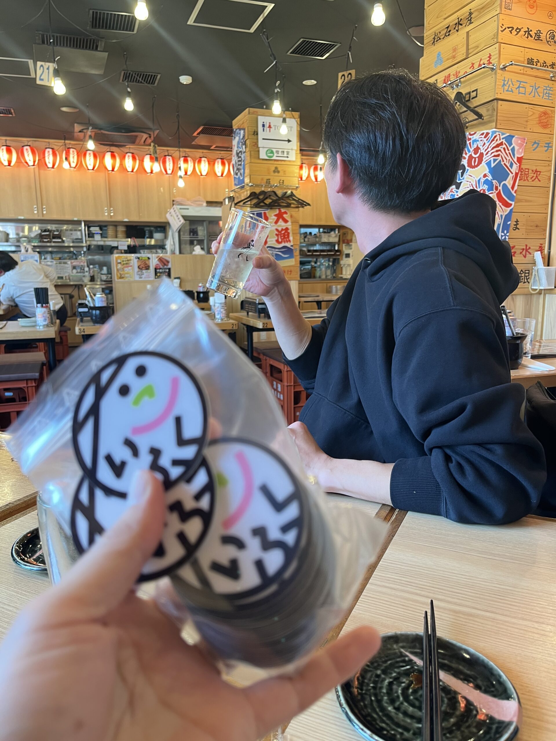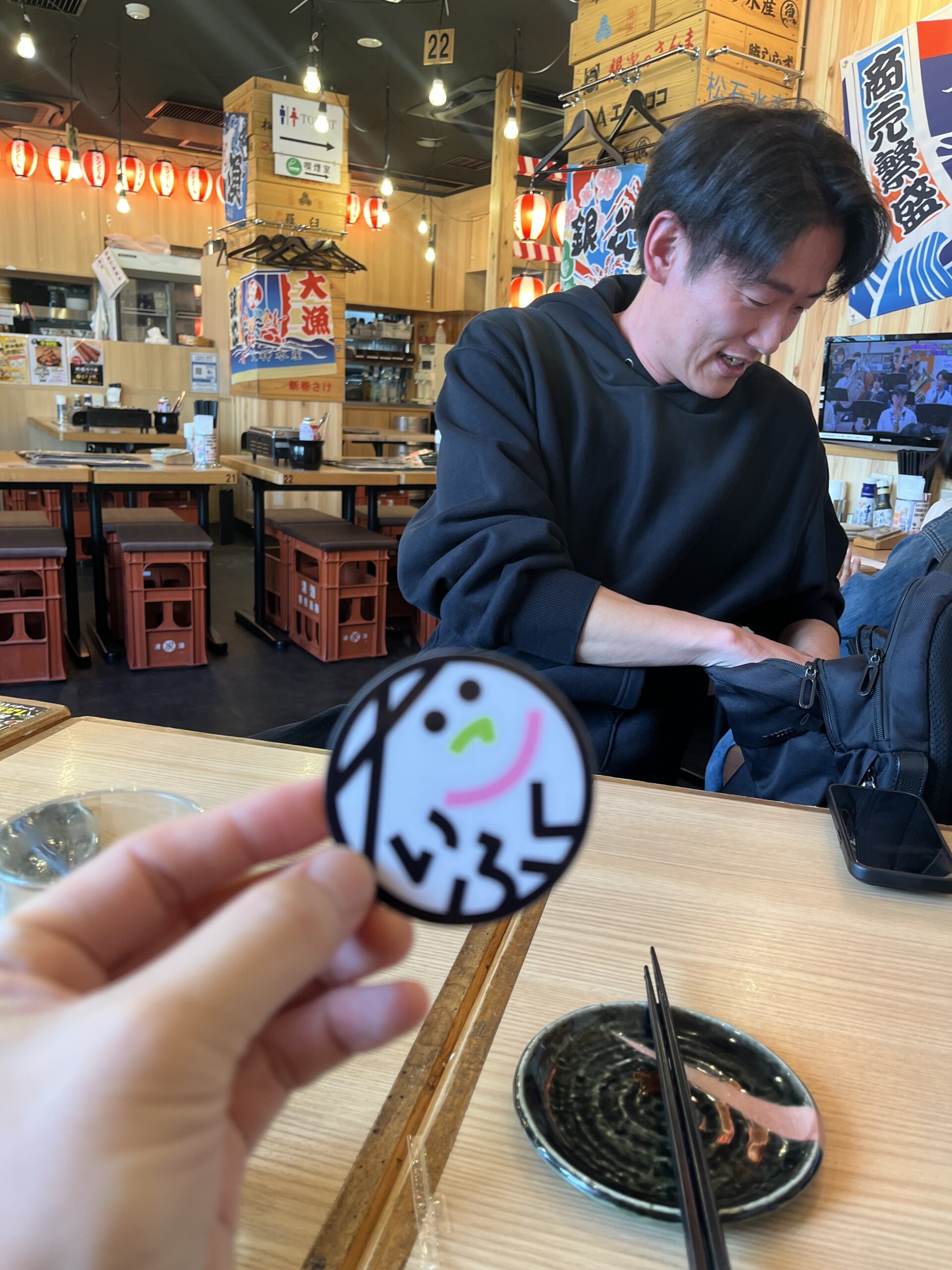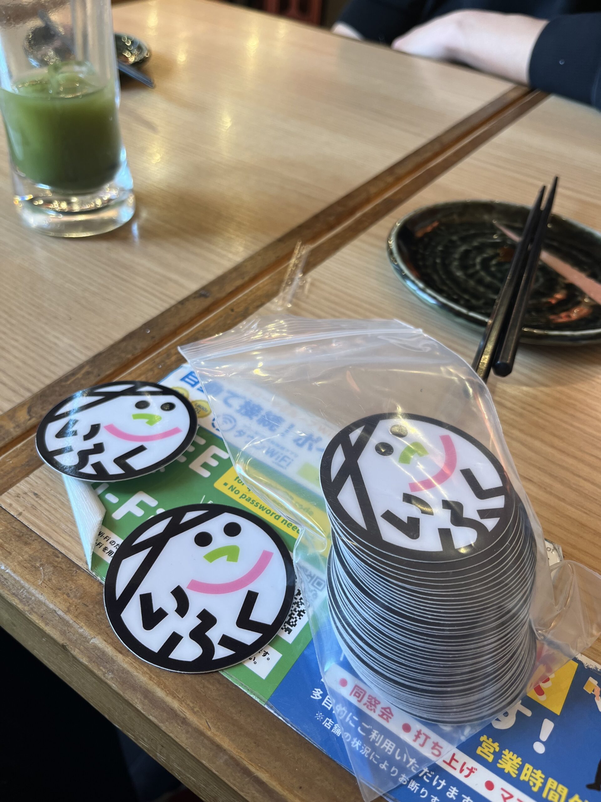 カバンからニヤニヤ何かを探しては、ほら1だいふくなんて、ステッカーを出してきて。