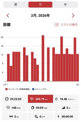 2月の月間距離は300㎞。